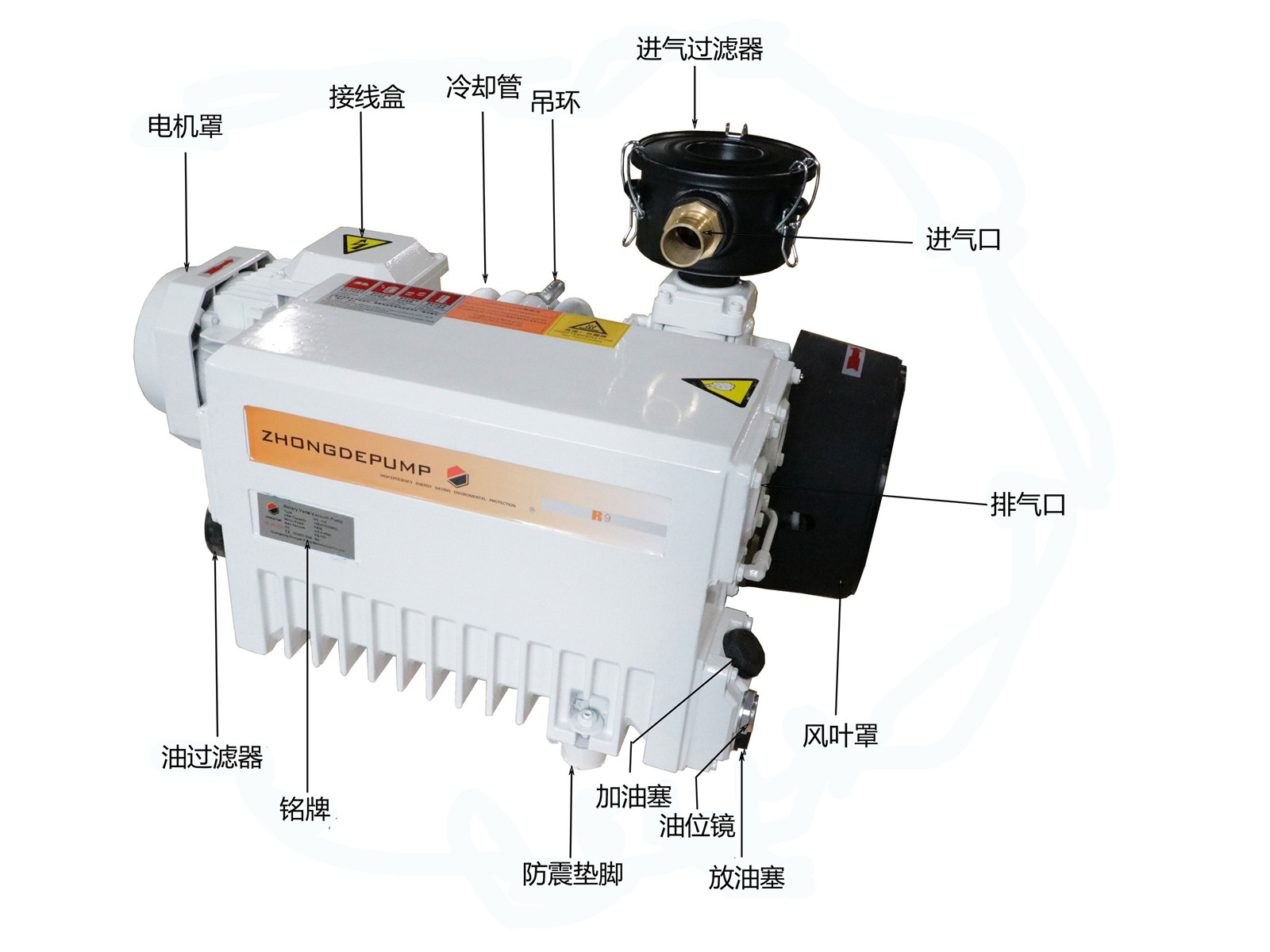 標準電機直聯驅動,可定制特殊要求電機結構緊湊輕巧,尤其適合設備配套吸排氣口采用標準螺紋,連接方便配備高效油氣分離裝置,排氣潔凈。